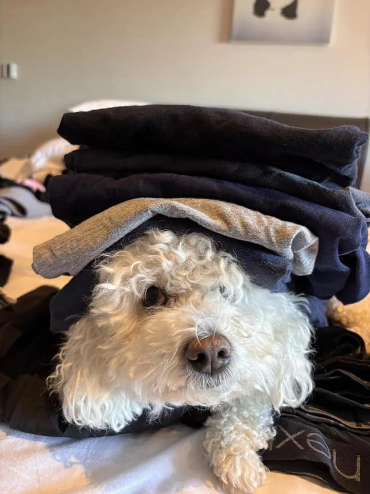 «Моя собака хотела поехать с нами в отпуск, поэтому попыталась слиться с вещами»