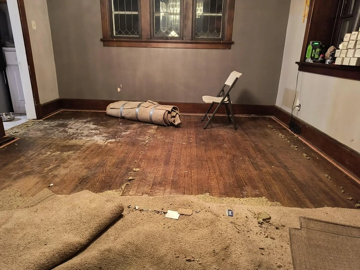 Под ковролином в старинном доме обнаружился отличный деревянный пол