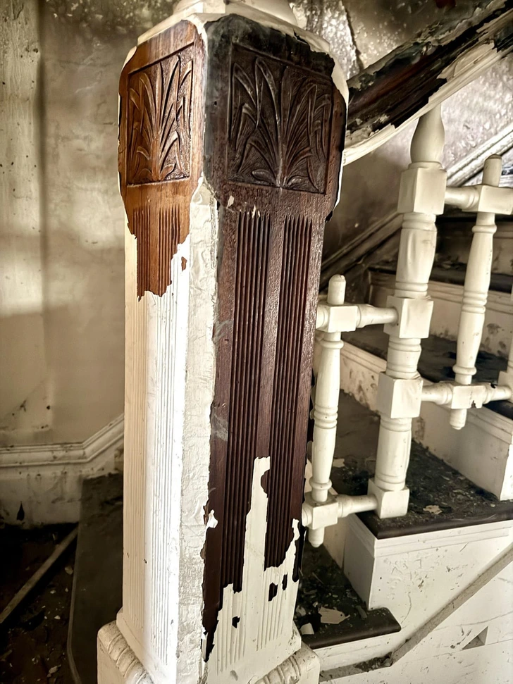 «В нашем старинном доме, которому 120 лет, произошел пожар. В результате от перилл отвалился толстый слой краски, а под ним оказалась красивейшая резьба»
