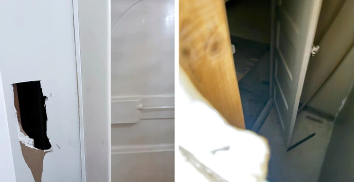 «Мы гадали, что скрывается за панелями из гипсокартона в ванной нашего дома. Оказалось, там есть дверь! Мы планируем ремонт в ванной, так что скоро туда доберемся»
