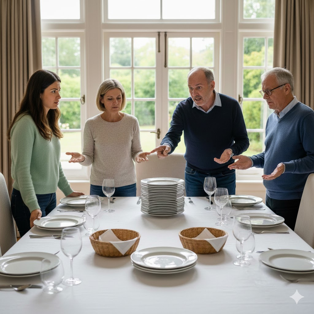 Стол был сервирован идеально. Белая скатерть без единой складки. Свечи. Хрустальные бокалы. Приборы на восемь персон. Всё на местах.