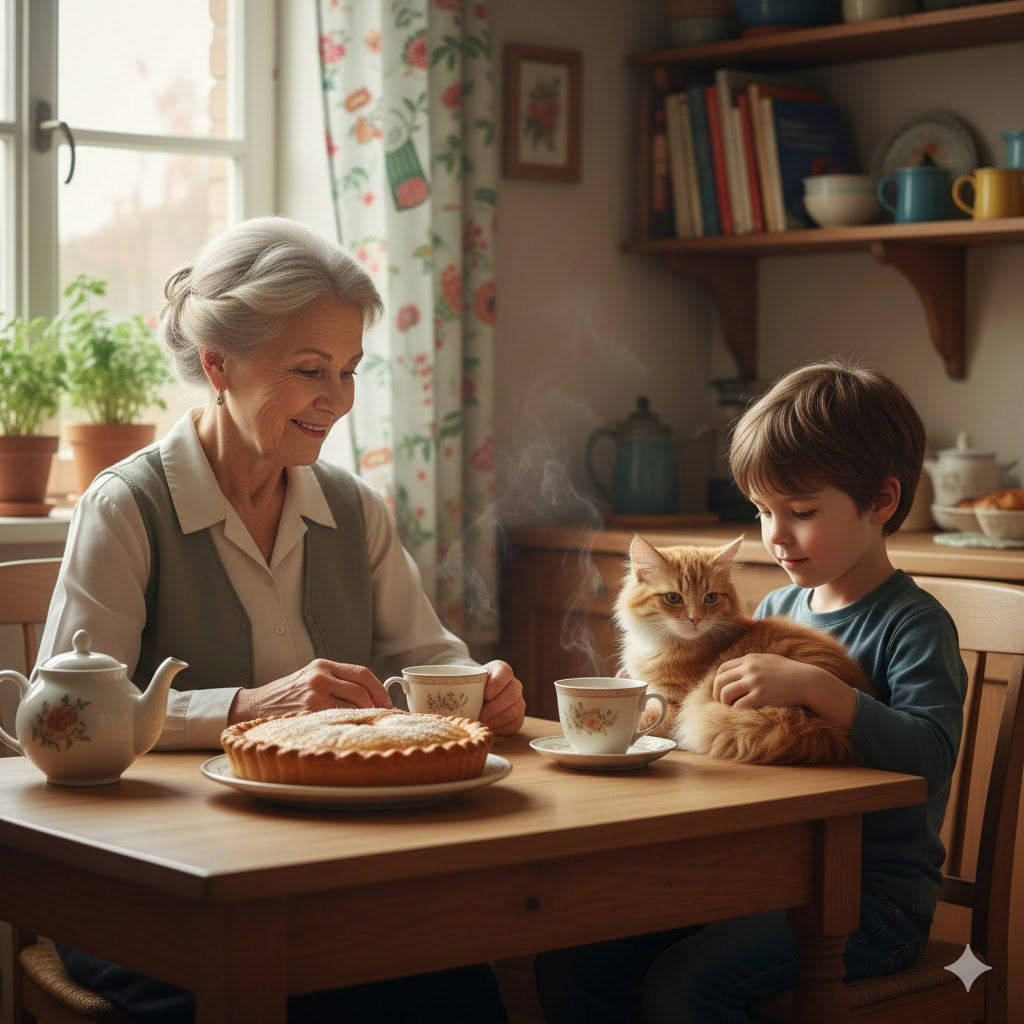 Квартира Марьи Сергеевны сразу приглянулась Егорке: уют, тепло, пирогом пахнет, а на диване растянулся лохматый рыжий кот Тимоша. Смотрит на гостя лукаво, но гладить позволяет, мальчишеские шалости терпит стoически. После чая с пирогом Егорка устроился на диване и моментально заснул.