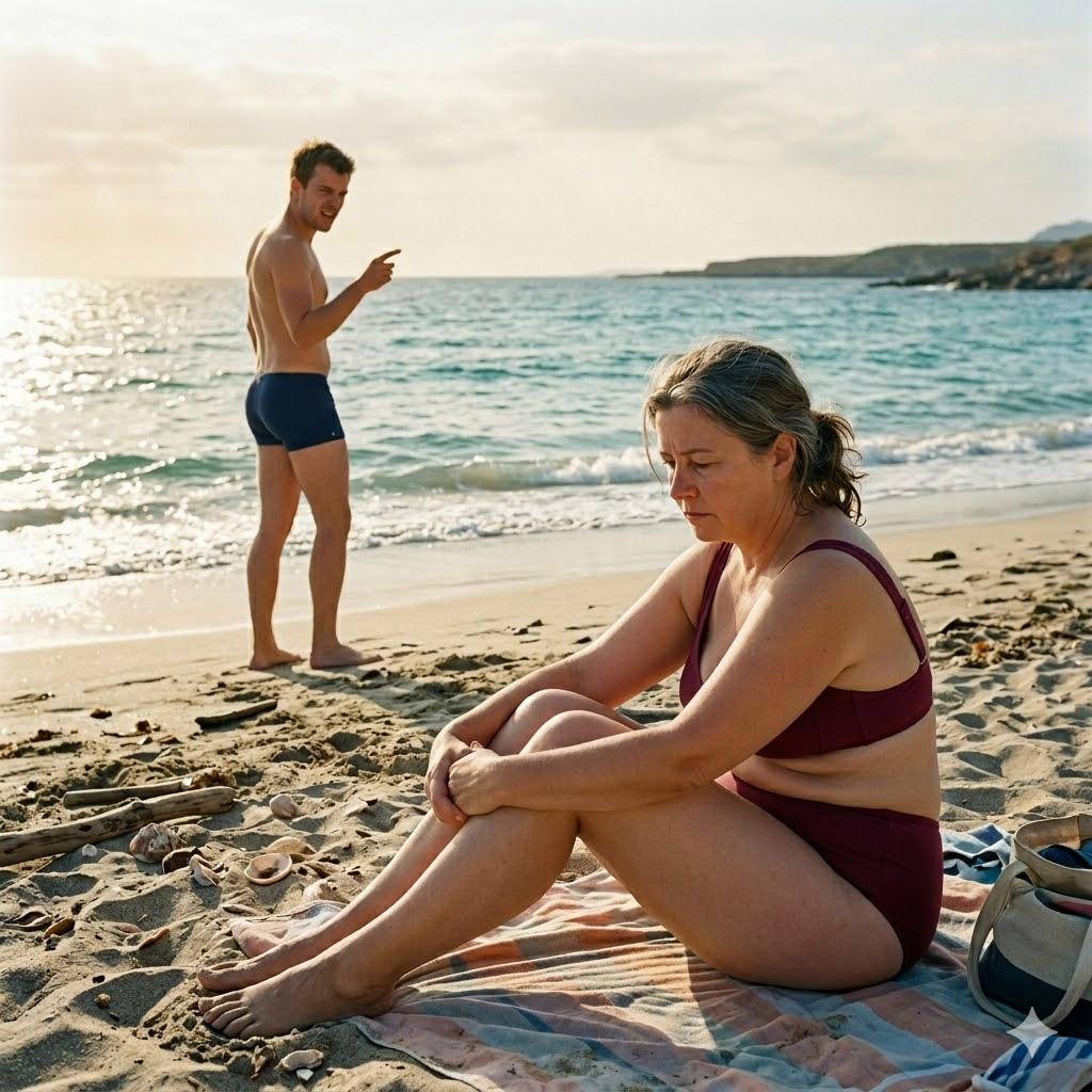 — Надень хоть парео, а то людей пугаешь своими формами, — лениво протянул Виталик, переворачиваясь на живот и смахивая песок в мою сторону. — Серьезно, мам, в таком возрасте еще и раздельный купальник?