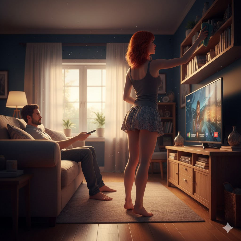 Игорь бросил эту фразу небрежно, словно обсуждал планы на выходные или прогноз погоды. Он развалился в широком кресле, лениво листая каналы на телевизоре. Тусклый свет экрана выхватывал из полумрака его расслабленное лицо с лёгкой, самодовольной улыбкой. Слова прозвучали как нечто само собой разумеющееся, не требующее обсуждения. Светлана, стоявшая у книжного шкафа и аккуратно вытиравшая пыль с корешков старых романов, замерла. Тряпка в её руке остановилась, а воздух в комнате вдруг стал тяжёлым, как перед грозой. Она не обернулась, позволяя его словам повиснуть в тишине, чтобы осознать их дерзость и вес.