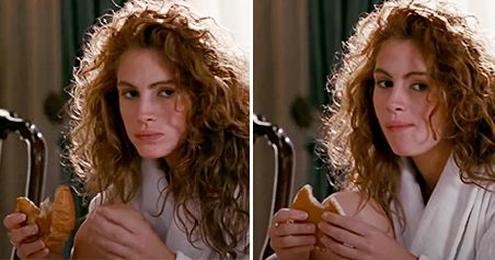 В сцене, где герой Ричарда Гира заказывает завтрак в номер, есть забавная деталь, которую вы могли не заметить. Вивьен начинает есть круассан, разговаривая с Эдвардом.