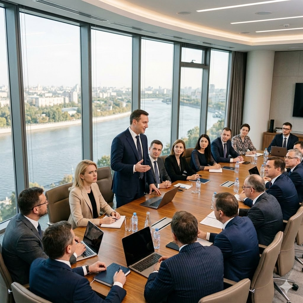 В конференц-зале снова были люди. Алексей собрал их для «планерки в новом формате». Он сидел во главе стола, развалившись в кресле, и что-то вещал про «корпоративные ценности». Когда дверь распахнулась и вошли мы, его лицо приобрело цвет мокрого мела.