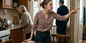 Свекровь медленно отложила салфетку в сторону и внимательно посмотрела на своего сына. Хозяйка дома всегда славилась суровым характером и редко позволяла себе проявлять эмоции, поэтому её резкий тон мгновенно заставил всех присутствующих замолчать. За столом воцарилась напряжённая тишина.