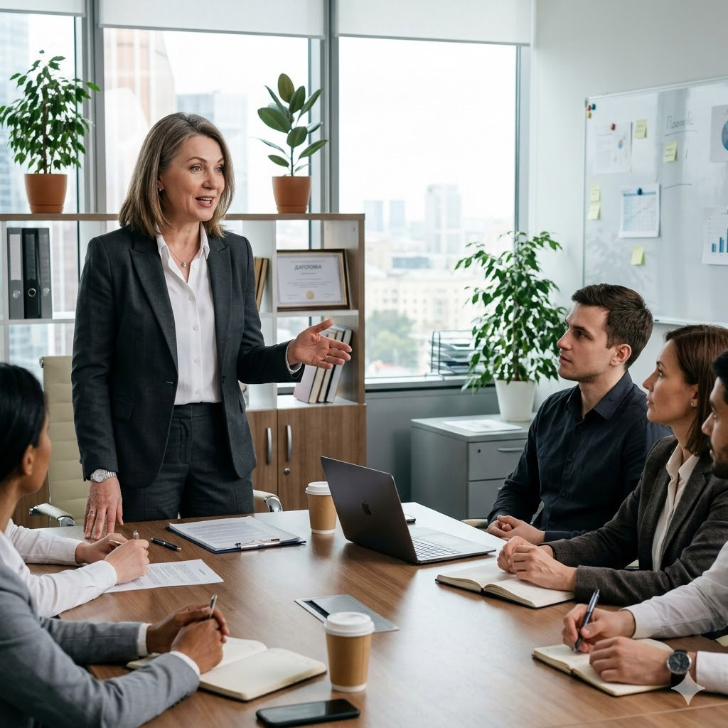 Ровно в 10:00 она начала «приветственную речь». Это была выверенная, холодная лекция о «новых горизонтах», «масштабировании», «KPI» и «синергии», каждое слово было отточено, как скальпель.