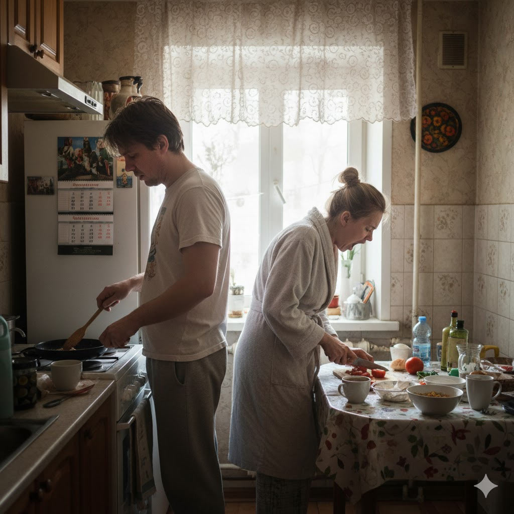 Вечером, когда Лена вернулась, было уже за одиннадцать. Андрей подогрел ужин — гречку с котлетами, которые сам приготовил днем. Жена съела молча, почти не жуя, словно заправлялась топливом перед следующим рабочим днем.