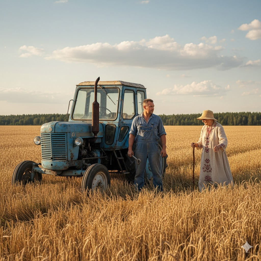 Прошлым летом выдались такие жаркие дни, что воздух над полем колыхался, словно дрожащее водное полотно, а от земли поднималось знойное марево, делая каждый вдох обжигающим и тягучим. Я чинил свой трактор прямо посреди бескрайнего поля — коробка передач вышла из строя, оставив железного великана беспомощно замершим среди золотистой пшеницы. Солнце палило безжалостно, его лучи были раскаленными иглами, от которых не было спасения. Ни единого дуновения ветерка, ни намёка на прохладу. Вокруг царила оглушительная тишина, нарушаемая лишь моим размеренным дыханием и звонким стрекотом кузнечиков в гуще колосьев.