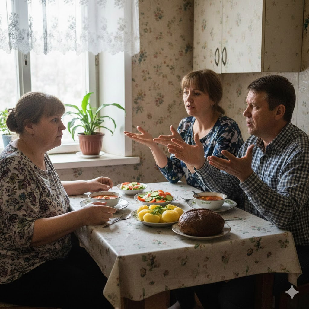 Татьяна Ивановна сдержанно улыбнулась, поправляя накрахмаленную салфетку на коленях. Она любила порядок во всем: и в бухгалтерии, где проработала тридцать лет, и на кухне, и в жизни. Этот званый ужин, на который напросились сваты, с самого начала вызывал у нее смутное беспокойство, но отказать было неудобно. Все-таки родители невестки, родня, как говорится.