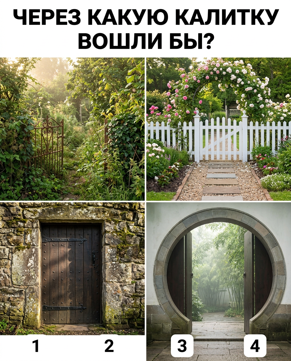Иногда самые простые решения говорят о нас больше, чем кажется. Представьте, что перед вами четыре разные калитки. Каждая ведёт в свой мир — и отражает ваше внутреннее состояние, желания и характер.