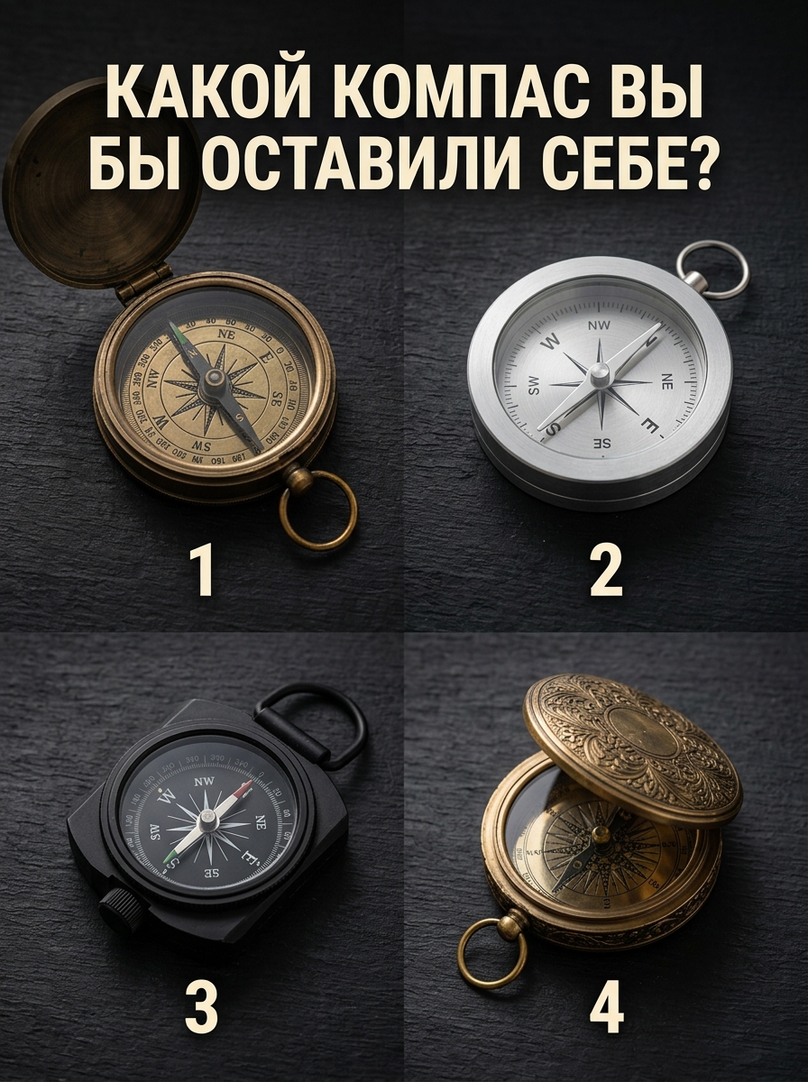 Сегодня мы предлагаем вам увлекательный эксперимент. Перед вами четыре совершенно разных компаса. Не пытайтесь анализировать их с точки зрения практичности или стоимости. Просто доверьтесь первому порыву, посмотрите на них и выберите тот, который отозвался в душе сильнее всего.