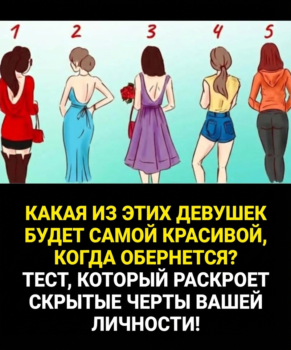 Представьте: всего одна картинка способна рассказать о вас то, чего вы сами о себе не знаете! Наш мозг, словно радар, мгновенно выхватывает то, что притягивает, успокаивает или удивительно точно отражает нас самих. Этот невероятный визуальный тест построен именно на таких первых впечатлениях. Перед вами пять загадочных женских силуэтов, снятых со спины. Ваша задача — интуитивно выбрать ту, которая кажется вам самой красивой.