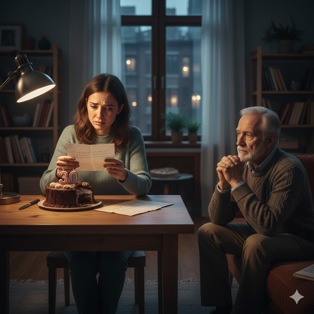 Когда все гости уже сидели за столом, Оля думала, что это будет обычный семейный вечер. Тридцать лет — круглая дата, собрались родители, брат, несколько друзей.